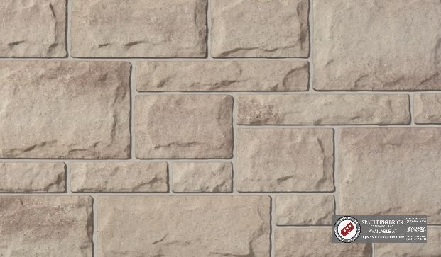 Shoreline Artiste2 is a manufactured full bed depth stone made by Brampton and sold by Spaulding Brick Company, Inc. in New England. It is a brown/tan stone in an ashlar pattern.